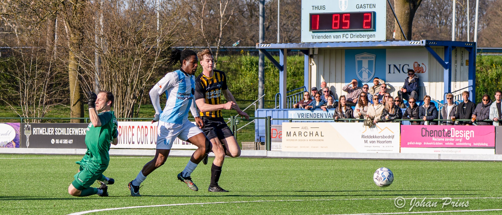 In de slotfase werd ook Bas van Denderen (debutant) nog ingebracht voor Emrah Baskak. Waar het publiek zich leek neer te leggen bij een gelijkspel, ging het in blessuretijd alsnog mis. Door een verdedigingsfout aan de kant van FC Driebergen wist SCH’44 de 2-3 te maken.