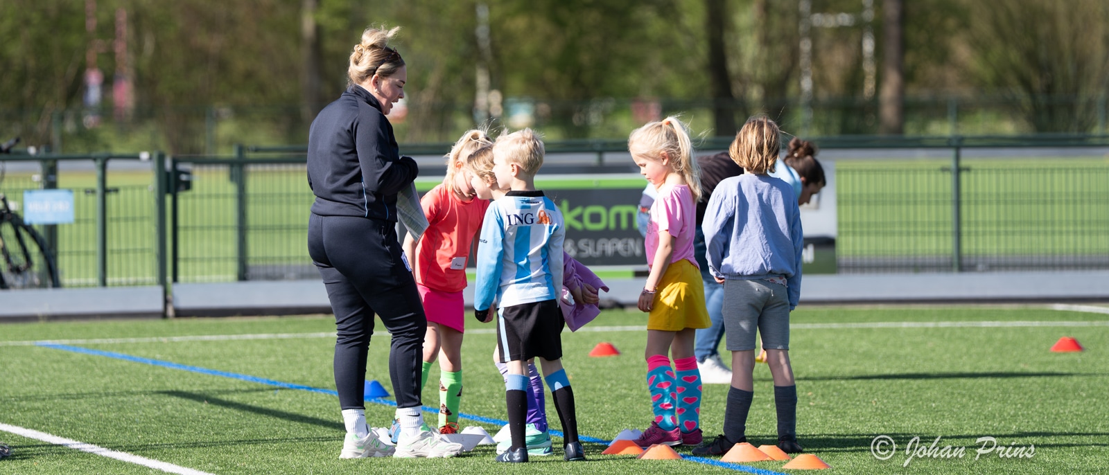 Ondanks het frisse weer scheen de zon volop. Langs de lijn stonden tientallen ouders te genieten van een sportieve en gezellige ochtend. De meiden doorliepen negen oefeningen op het gebied van balbeheersing, conditie, teamwork en partijspel, begeleid door speelsters uit Vrouwen 1. Bij het penaltyschieten mochten de meiden aanleggen tegen de keepster van Vrouwen 1 en bij het voetbalbowlen werd er vol overgave gestreden om de hoogste score. De ochtend werd afgesloten met een spannende bingo en de uitreiking van medailles voor het penaltyschieten en prijzen voor het voetbalbowlen.