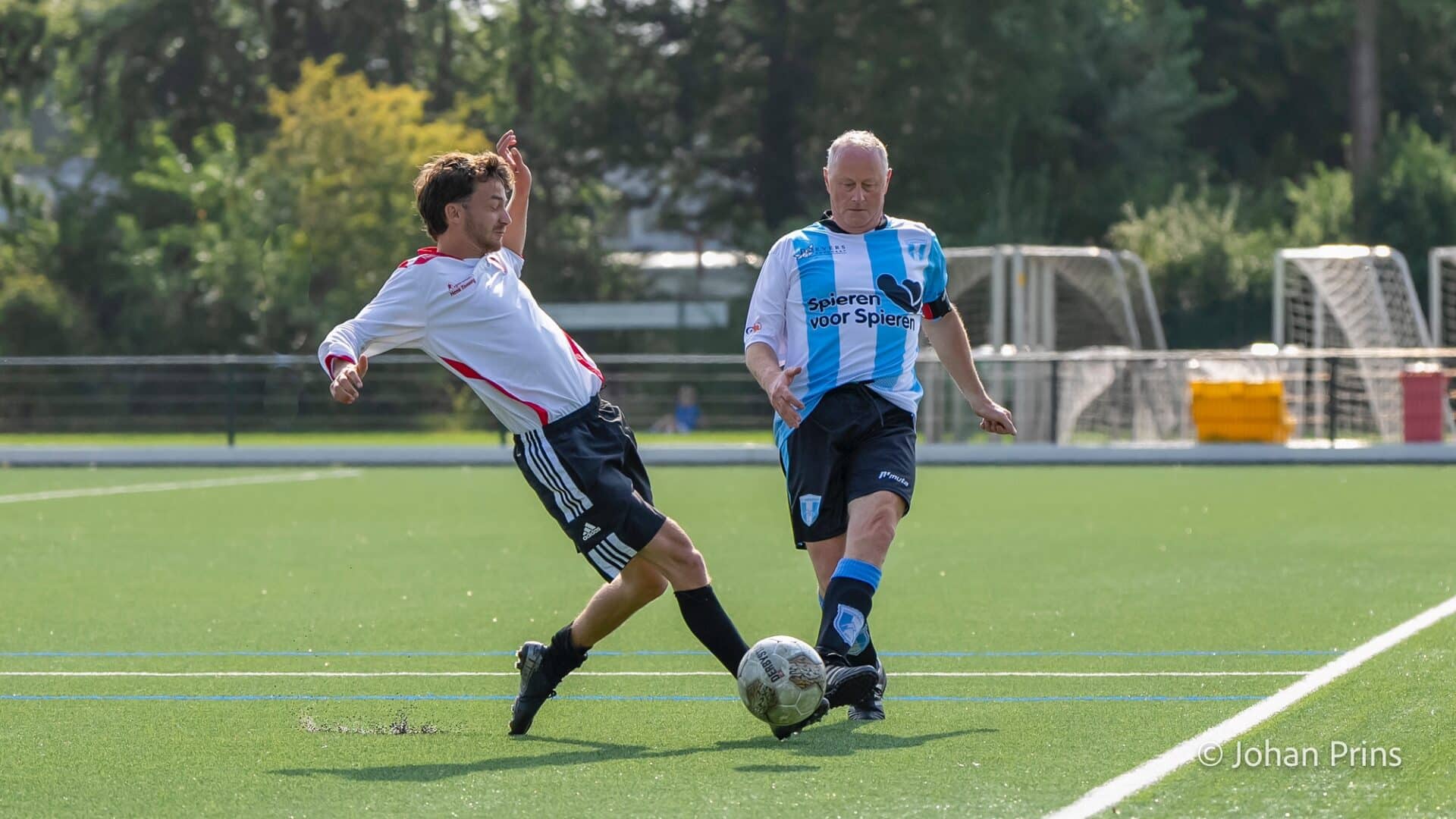 En dan is de zondag erna er eentje die de mannen van de jongens onderscheidt. Zonder Sjors en Bas, Kees en Henk, met een tropische temperatuur van 32 graden de plastic mat op en ballen maar. De jongens van Sterrenwijk – fris en fruitig vol goede zin in een nieuw samengesteld elftal – tegen de monumenten van Zondag 2.