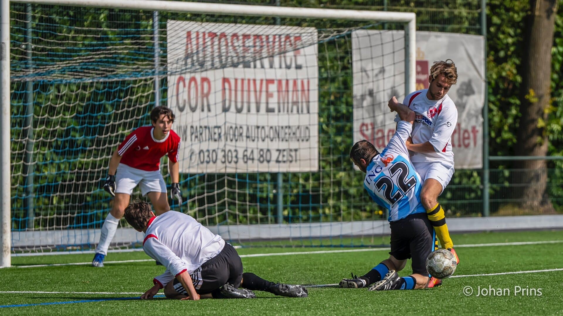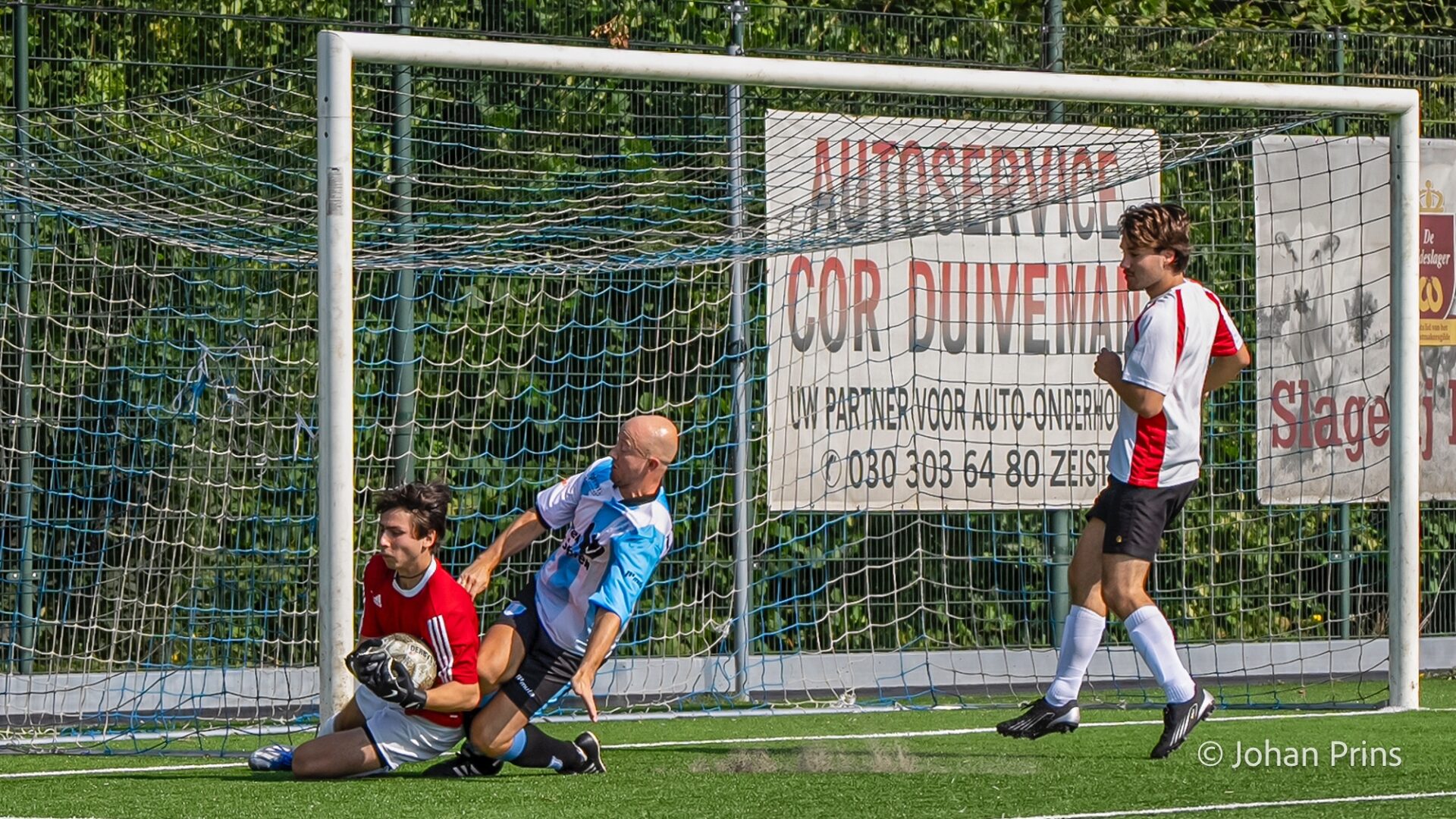 Monumenten, dat betekent zorg. ‘Rust roest’, het adagium van Zondag 2, is iets waar tegenwoordig zelfs Brinkie gehoor aan geeft. Onze doelman had zijn Scania-frame de afgelopen zomer voor het eerst wekelijks aan de groepstraining blootgesteld. Zoiets gaat niet zonder wat gepiep en gekraak (en wat dagdromerij over de spitspositie), maar Jeroen is wel in vorm aan het komen (zowel qua carrosserie als conditie), en kon deze eerste bekerwedstrijd alleen maar door Michel worden verschalkt.